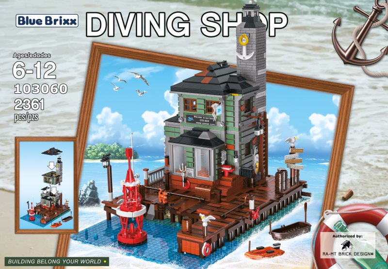 Le set "Diving Shop" de BlueBrixx Pro, référence 103060, est un magnifique modèle à construire qui complète parfaitement le mythique set Lego ideas "Le vieux magasin de pêche - Ref 21310"