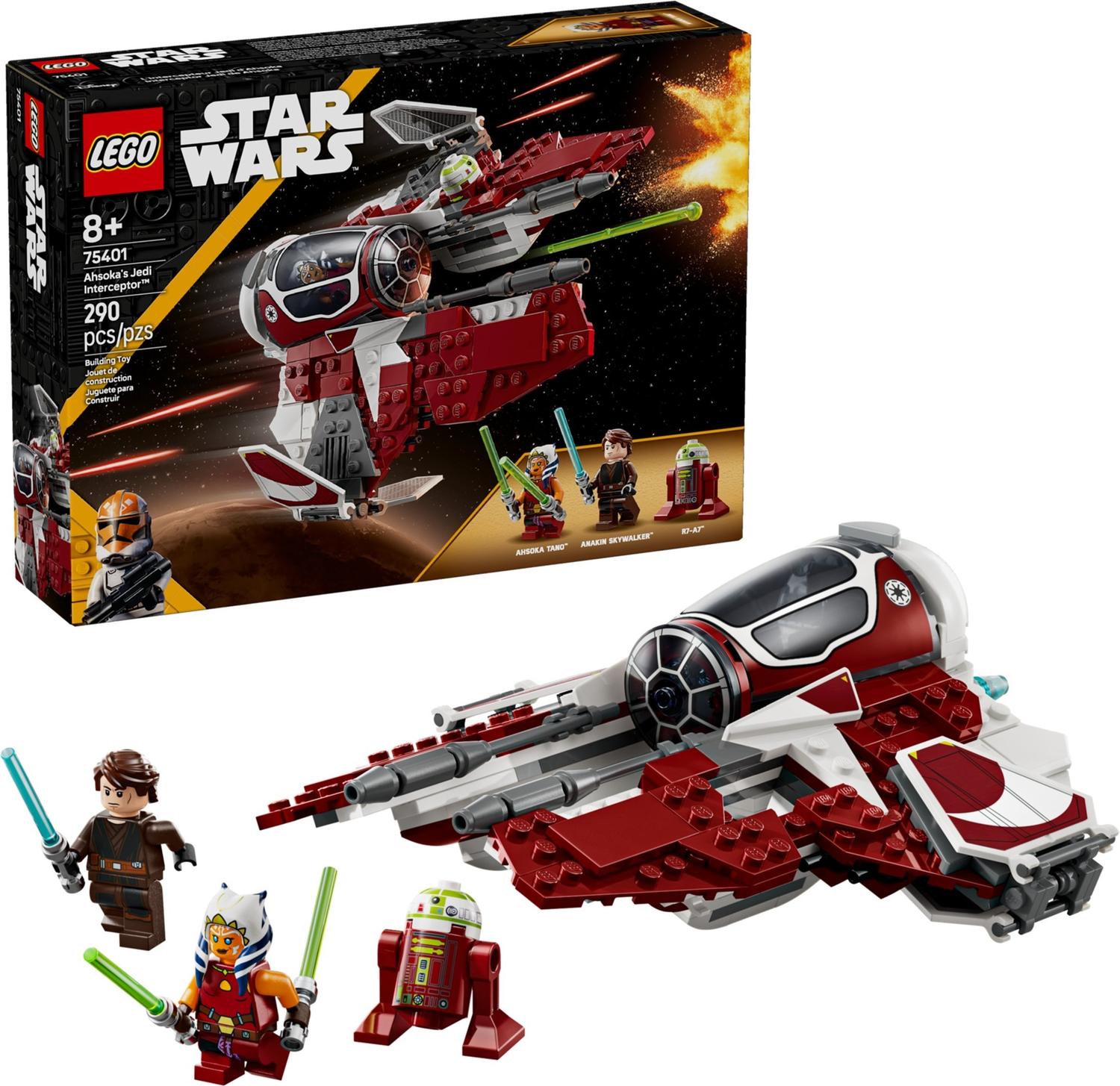 Let kids create their own exciting Star Wars: The Clone Wars™ adventures with Ahsoka’s Jedi Interceptor Starfighter Building Toy (75401). A cool LEGO® Star Wars™ gift idea for boys, girls and fans aged 8 and up, this brick-built Jedi Interceptor features an opening cockpit, adjustable wings for attack and cruise modes, and 2 spring-loaded shooters. The buildable playset includes 2 LEGO Star Wars minifigures – Ahsoka Tano and Anakin Skywalker with Lightsabers™ – plus an R7-A7 LEGO droid figure for fantasy play. Ahsoka can be placed in the Jedi Interceptor’s cockpit, and there’s room on board for R7-A7 and storage for Ahsoka’s Lightsabers™.