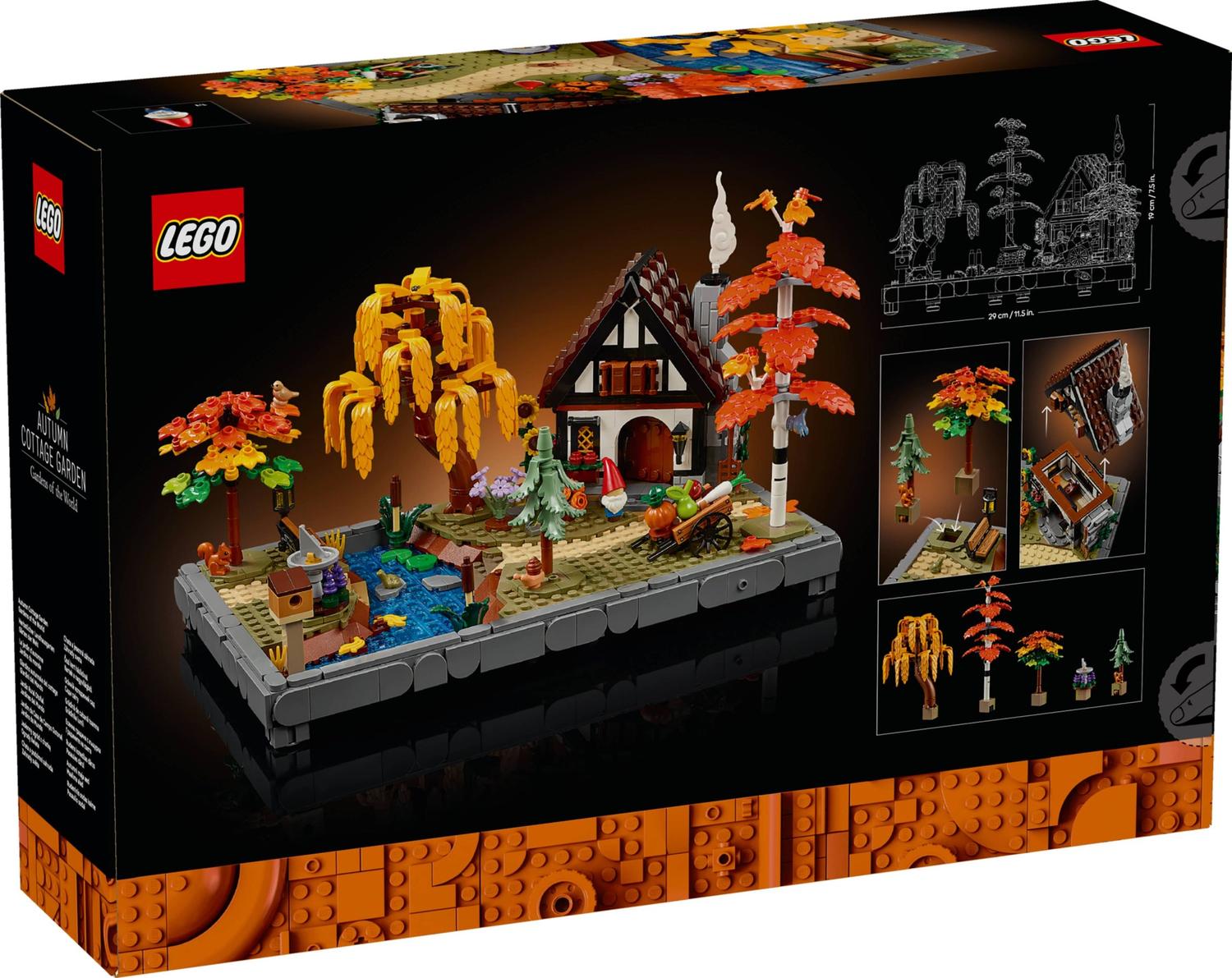 Capture the essence of autumn with the LEGO® Icons Autumn Cottage Garden (11372) model building kit for adults. Craft a seasonal centrepiece bursting with autumn colours. Unwind as you build each intricate detail, then rearrange the trees, plants and cottagecore decor elements to create a vibrant display for the home or office. Inspired by storybook cottages, this addition to the Gardens of the World collection features birch, weeping willow, blue spruce and maple trees, plus seasonal flowers. Other highlights include a sundial, birdhouse, vegetable cart, a garden gnome and a stream with stepping stones. A cottage with a cosy kitchen and woodland creatures including robin and nuthatch birds, a squirrel, frog, and snail add the final touches to this model – a perfect gift for adult fans of creative home decor. Build smarter with the LEGO® Builder app – zoom, rotate in 3D, track your progress and follow step-by-step digital instructions. Contains 1,102 pieces.