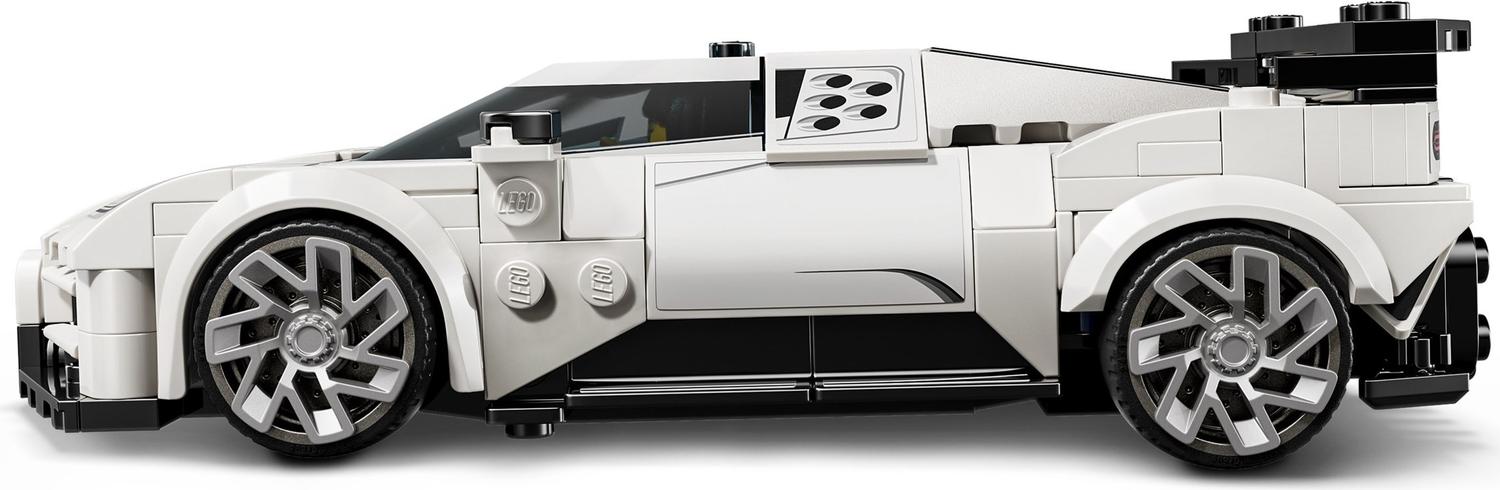 The Bugatti LEGO® car model includes the Centodieci hyper sports car’s 5 round air-intake features on the side, its unique rims, headlights, horseshoe radiator grille, overhanging rear wing and 4 rear tailpipes. The LEGO car set also comes with a Bugatti driver minifigure for kids to place behind the wheel and role-play action.