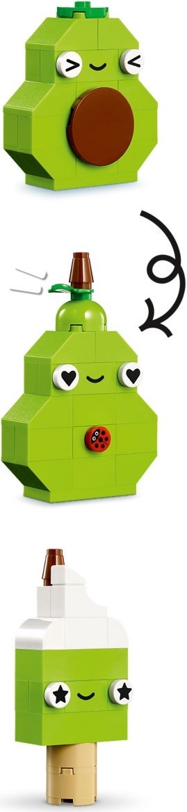 Kids use the colorful and captivating assortment of building bricks and special pieces – such as eyes, mouths and various decorative elements – to build 4 cute Food Friend toys: a cupcake, ice cream, avocado and taco. The creative fun continues as kids mix the bricks to rebuild the models into a cake with sprinkles, bubble-tea drink, pear and a panini. As kids become more confident in their building skills, they can follow the intuitive building guide to change expressions, shapes or colors to create new Food Friends, including a green ice cream, juice carton, slice of watermelon, chocolate bar and a mega sandwich.