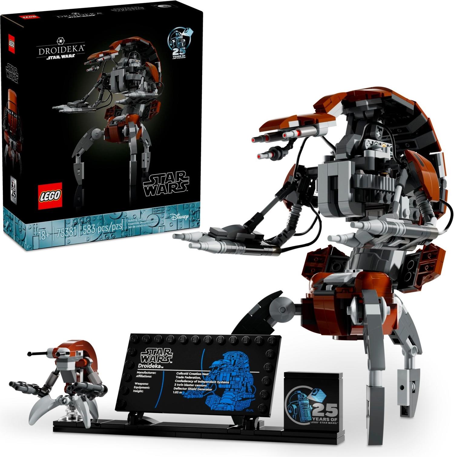 To complete a striking centrepiece, this creative building set also has a stand with an information plaque, a LEGO Star Wars 25th anniversary brick and space for the included small LEGO figure of a Droideka.