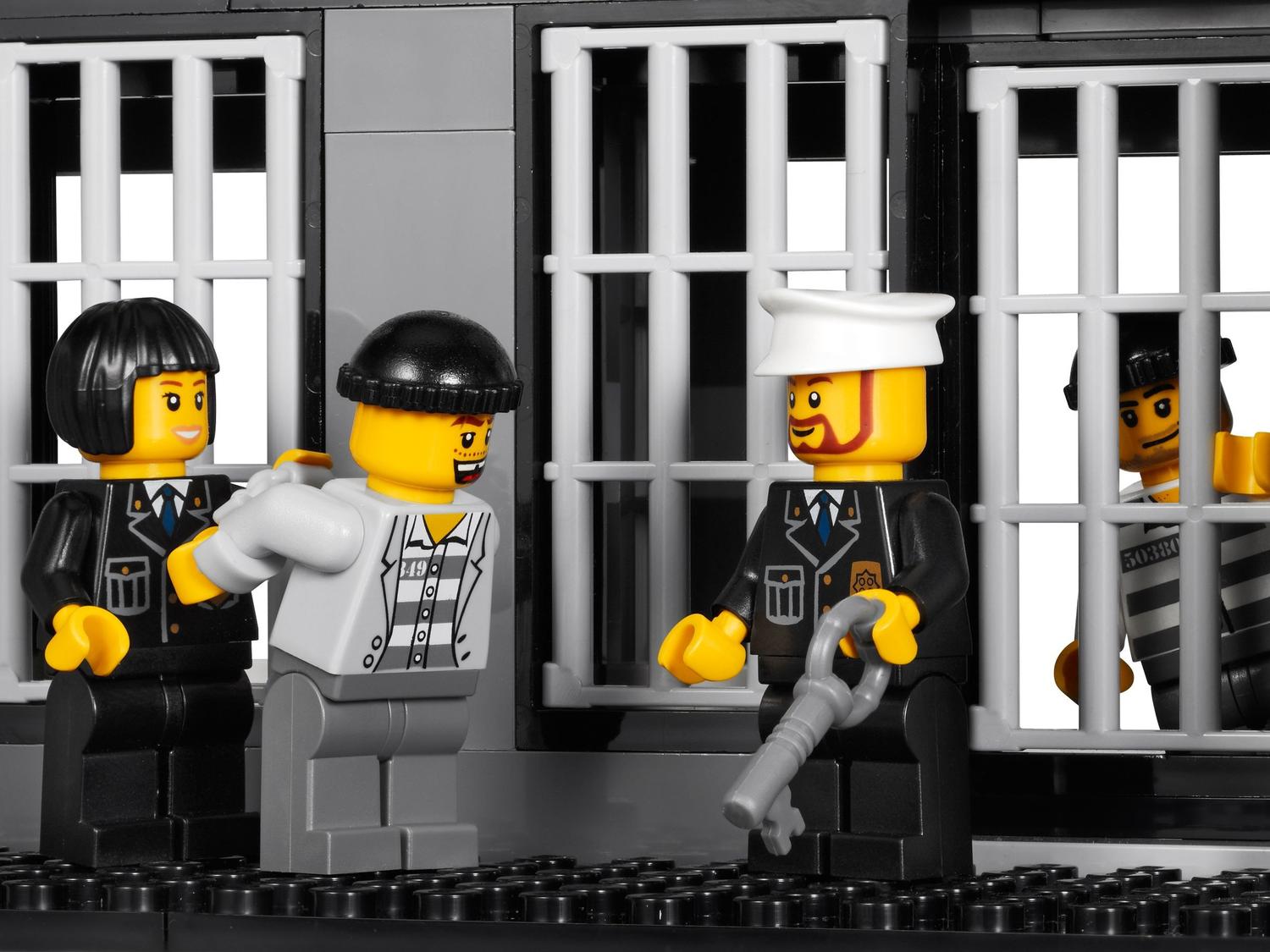 Stop the prisoners from escaping the police station through the pipe drain! They won’t get far on foot! Use the police car to chase them back to prison in the police van. Lock criminals up in two jail cells! Pull police vehicles into the garage! Land a helicopter on the roof! Restore the law and order in LEGO® City with this feature-packed set including evidence room, mug shot area and secret compartment.