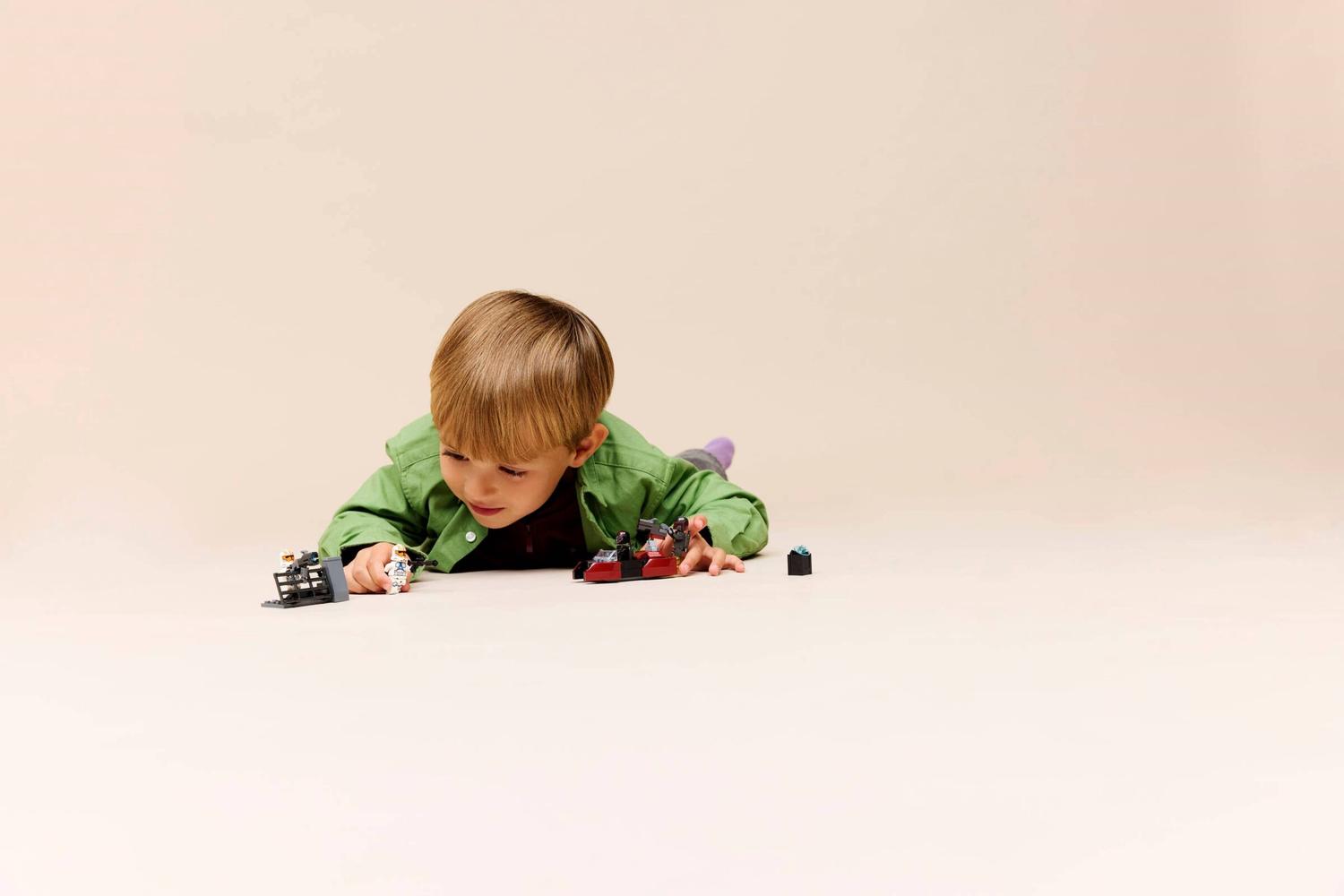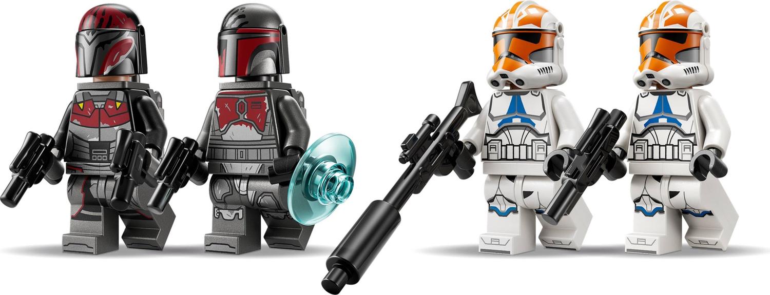 Treat kids to an awesome Battle Pack (75449) to play out their own version of the Siege of Mandalore from Star Wars: The Clone Wars™. This toy building set features 4 LEGO® Star Wars™ minifigures – 2 Mandalorian Super Commandos and 2 Ahsoka versions of 332nd Clone Troopers, a Mandalorian speeder, the Clone Troopers’ barricade and lots of accessories for action-packed play. Activate the speeder’s stud-shooting blaster and fire back with the stud shooter mounted on the barricade. Strap on the Commandos’ jetpacks for aerial attacks with their blaster pistols. This building toy has so much to inspire kids’ imaginations and makes a fantastic small gift for boys, girls and any Star Wars fans ages 6 years old and up. And look out for other Battle Pack sets (sold separately) in the range to add even more play possibilities. Kids can build with confidence using the LEGO® Builder app – zoom, rotate in 3D and track progress with easy-to-follow digital instructions. Set contains 116 pieces.