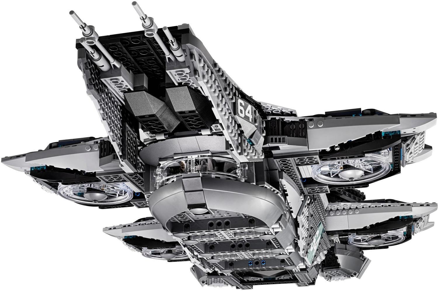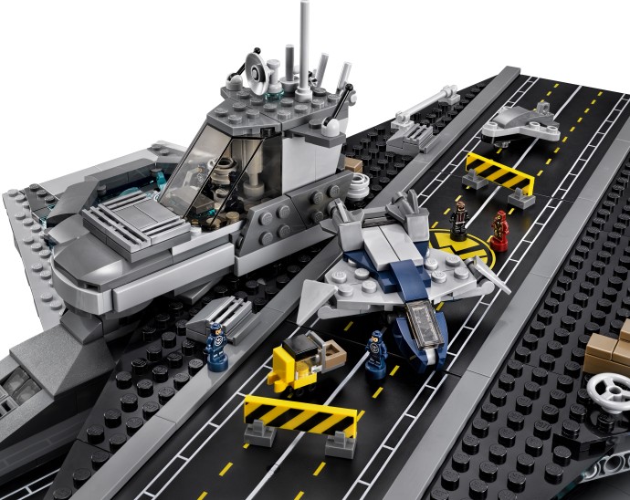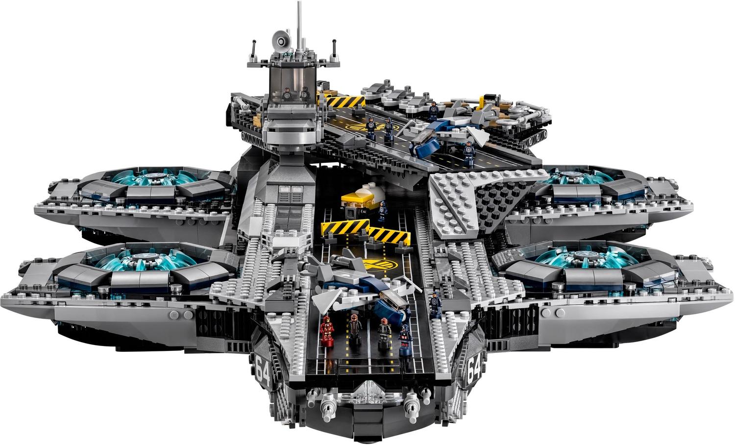 Take on the challenge of building this awesome LEGO® model of The SHIELD Helicarrier. Construct the flying aircraft carrier with 2 runways, microscale Quinjets, fighter jets and ground support vehicles. The set also comes with many of your favorite LEGO Marvel Super Heroes minifigures, plus 12 microfigures to display on deck and within the highly detailed interior. Includes 5 minifigures: Nick Fury, Black Widow, Captain America, Hawkeye and Maria Hill.