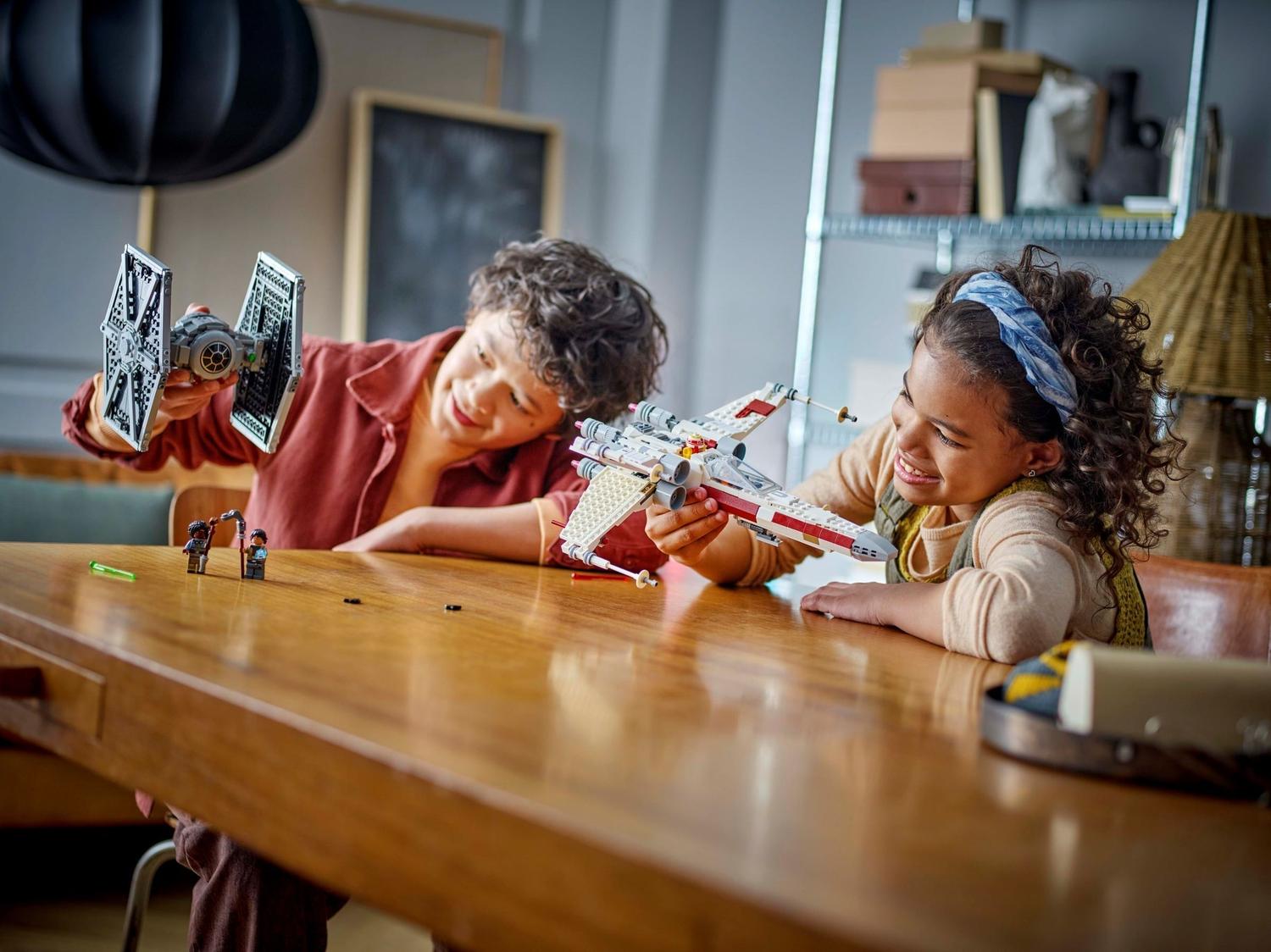 Recreate mash-up starfighters from the LEGO® Star Wars™: Rebuild the Galaxy Disney+ special with this TIE Fighter \u0026 X-Wing Mash-up (75393) buildable toy playset for kids. A cool LEGO gift for boys, girls and any Star Wars fans, the set features a ‘TIE-wing’ and ‘X-fighter’, each with an opening cockpit for a LEGO minifigure and 2 spring-loaded shooters. Simply remove the locking pins to detach the wings from the hull of each buildable vehicle toy and rebuild to create the familiar, iconic TIE fighter and X-wing. The wings of the ‘TIE-wing’/X-fighter are adjustable for flight and attack modes and, once rebuilt as the X-wing, the retractable landing gear can be used.